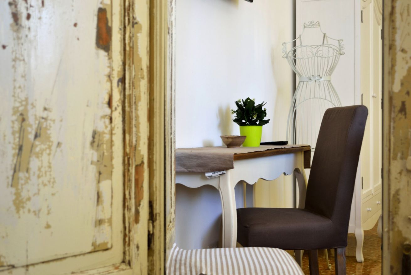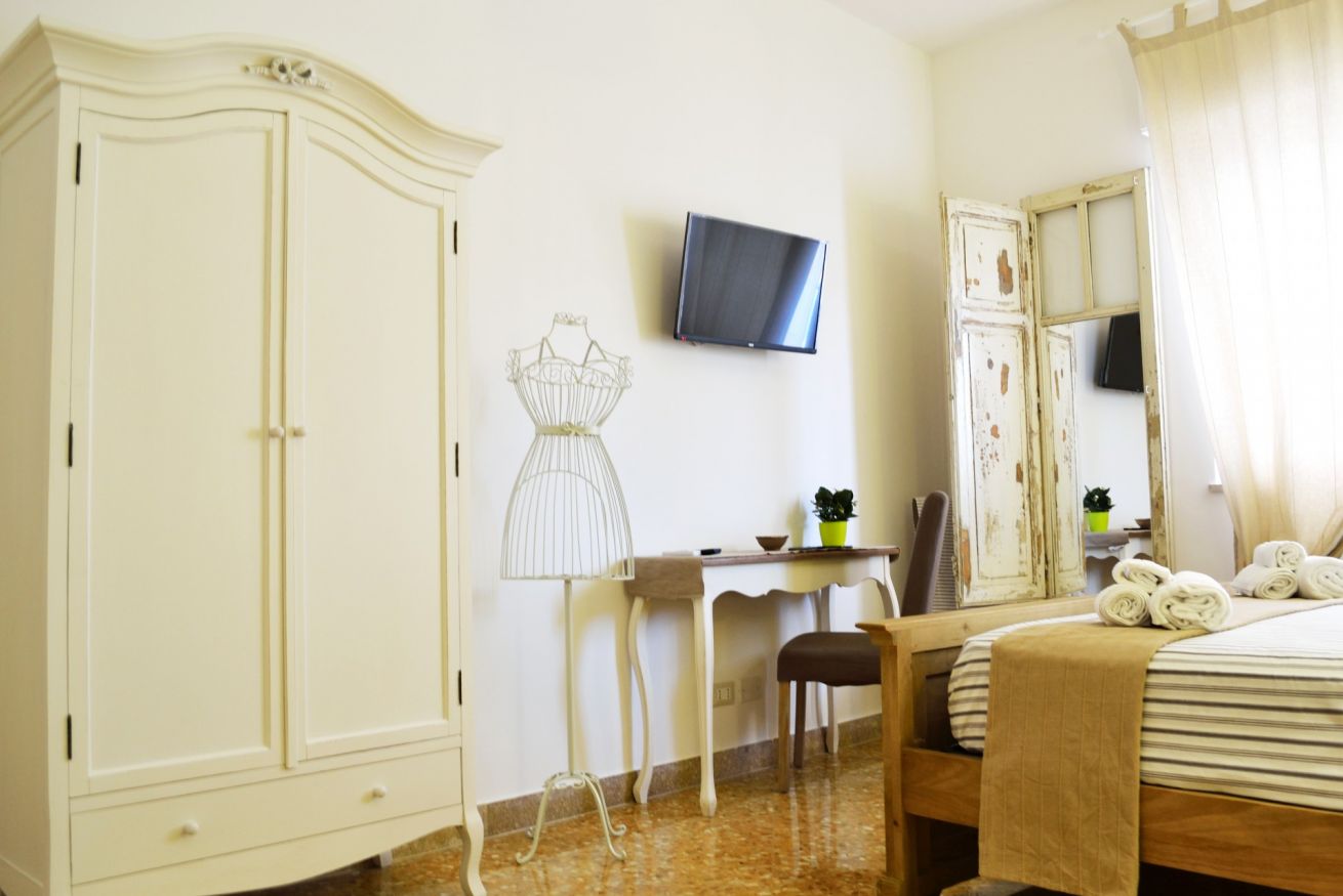 Camera ampia e spaziosa che può ospitare fino a tre persone. La stanza “La Classica” del B&B Piazza Marina è caratterizzata da uno stile shabby chic che bene si addice ai toni più acidi delle decorazioni. È la soluzione ideale per chi desidera lasciarsi coccolare da particolari dettagli di stile che regalano un’atmosfera rigenerante e di puro relax all’ambiente.
